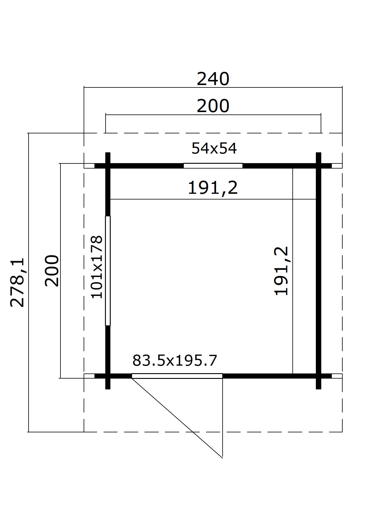 Sügavus koos räästa üleulatuvusega: 278 cm
