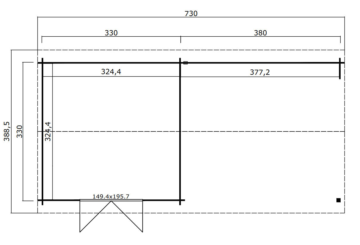 Põrandapind 10.50 m²Ehitisealune pind: 23.43 m²Katuse pindala: 29.50 m²Varikatuse pindala: 12.20 m²Katuse kalle: 13.8Seina paksus 28 mmAlusraam: -Põrandalaua paksus: -Katuselaua paksus: 15,5 mmVundament 710 x 330 cmLaius koos räästa üleulatuvusega: 730 cmSügavus koos räästa üleulatuvusega: 389 cmSeina kõrgus: 211 cmHarja kõrgus: 251 cmKatuse üleulatuvus eest: 29 cmKatuse üleulatuvus külgedelt: 10 cmKatuse üleulatuvus tagant: 29 cmUkse tüüp BronzeUkse mõõdud: 1494 x 1957 mmUkse klaasi paksus: 4Ukse klaasi tüüp: Ühekordne klaasPaigaldatav peegelpildis: JahKonstruktiivne materjal: FeesprussNurga tüüp: Tapitud nurkMaterjal: Põhjamaine kuuskLumekoormus: 41 kg/m²