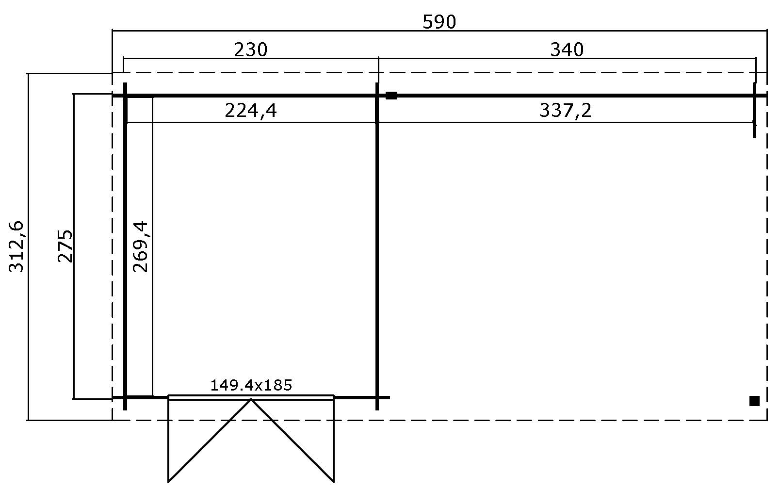 Põrandapind 6.05 m²Ehitisealune pind: 15.68 m²Katuse pindala: 18.88 m²Varikatuse pindala: 9.08 m²Katuse kalle: 12Seina paksus 28 mmAlusraam: -Põrandalaua paksus: -Katuselaua paksus: 15,5 mmVundament 570 x 275 cmLaius koos räästa üleulatuvusega: 590 cmSügavus koos räästa üleulatuvusega: 313 cmSeina kõrgus: 200 cmHarja kõrgus: 228 cmKatuse üleulatuvus eest: 19 cmKatuse üleulatuvus külgedelt: 10 cmKatuse üleulatuvus tagant: 19 cmUkse tüüp BronzeUkse mõõdud: 1494 x 1850 mmUkse klaasi paksus: 4Ukse klaasi tüüp: Ühekordne klaasPaigaldatav peegelpildis: JahViimistlus: ViimistlemataVärvitoon: NaturaalneKonstruktiivne materjal: FeesprussNurga tüüp: Tapitud nurkMaterjal: Põhjamaine kuuskLumekoormus: 97 kg/m²