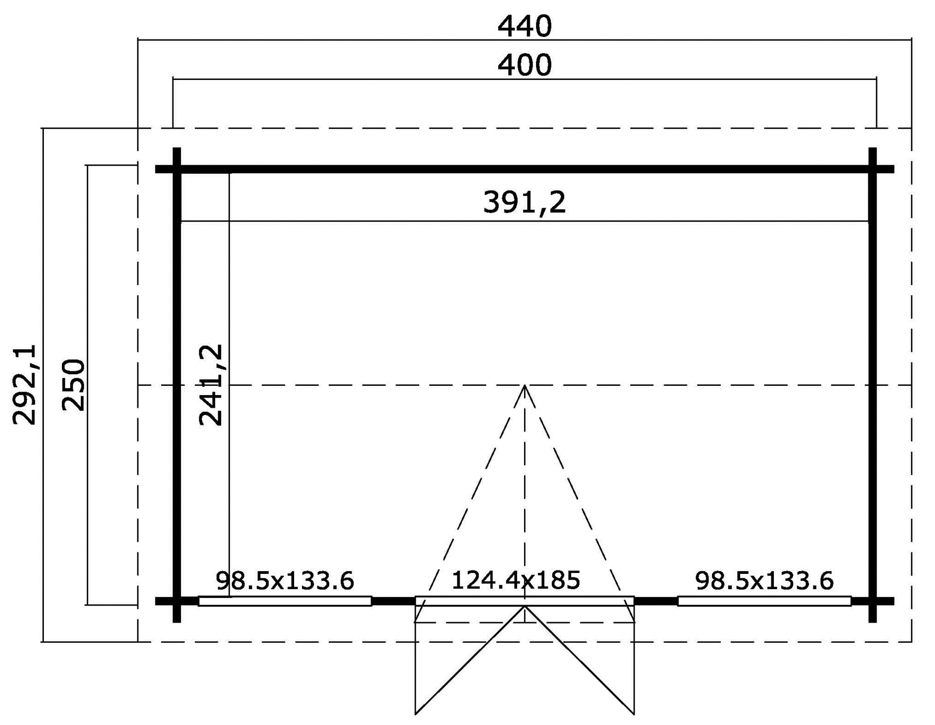 Põrandapind 9.40 m²Ehitisealune pind: 10.00 m²Katuse pindala: 14.24 m²Katuse kalle: 13 / 24,4Seina paksus 44 mmAlusraam: 45 x 70 mmPõrandalaua paksus: 18,5 mmKatuselaua paksus: 18,5 mmVundament 400 x 250 cmLaius koos räästa üleulatuvusega: 440 cmSügavus koos räästa üleulatuvusega: 292 cmSeina kõrgus: 200 cmHarja kõrgus: 239 cmKatuse üleulatuvus eest: 21 cmKatuse üleulatuvus külgedelt: 20 cmKatuse üleulatuvus tagant: 21 cmUkse tüüp GoldUkse mõõdud: 1244 x 1850 mmUkse klaasi paksus: 4/6/4 mmUkse klaasi tüüp: PakettklaasAkna tüüp GoldAkna mõõdud: 985 x 1336 mmAkna klaasi paksus: 4/6/4 mmAkna klaasi tüüp: PakettklaasPaigaldatav peegelpildis: JahViimistlus: ViimistlemataVärvitoon: NaturaalneKonstruktiivne materjal: FeesprussNurga tüüp: Tapitud nurkMaterjal: Põhjamaine kuuskLumekoormus: 71 kg/m²