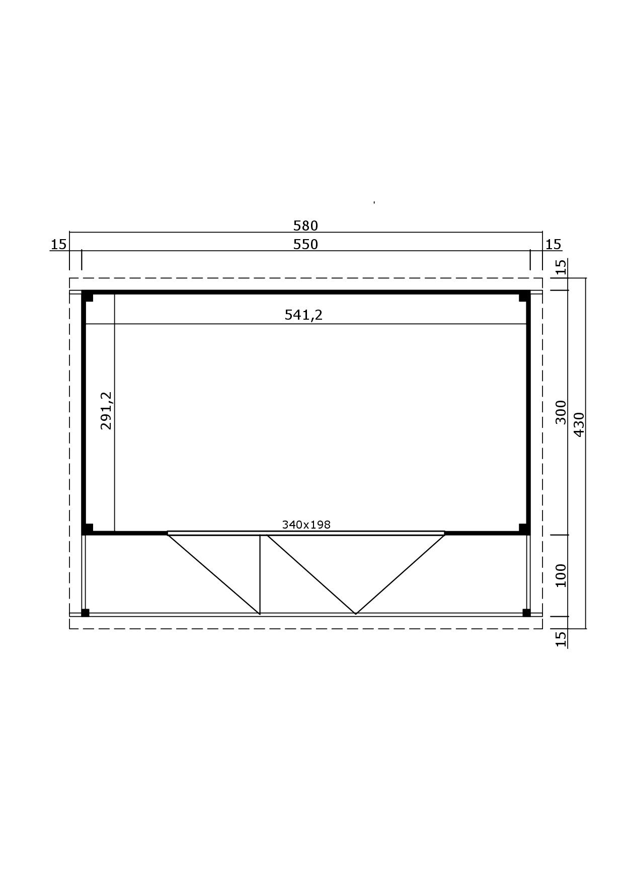 Põrandapind 15.80 m²Terrassi pindala: 5.40 m²Ehitisealune pind: 22.00 m²Katuse pindala: 25.16 m²Varikatuse pindala: 5.40 m²Katuse kalle: 1.7Seina paksus 44 mmAlusraam: 45 x 70 mmPõrandalaua paksus: 18,5 mmKatuselaua paksus: 18,5 mmTerrassilaua paksus: 19 mmVundament 550 x 400 cmTerrass: 550 x 100 cmLaius koos räästa üleulatuvusega: 580 cmSügavus koos räästa üleulatuvusega: 430 cmSeina kõrgus: 228 cmHarja kõrgus: 239 cmKatuse üleulatuvus eest: 115 cmKatuse üleulatuvus külgedelt: 15 cmKatuse üleulatuvus tagant: 15 cmUkse tüüp Aluminium +Ukse mõõdud: 3400 x 1980 mmUkse klaasi paksus: 4/6/4 mmUkse klaasi tüüp: Pakettklaas/KarastatudPaigaldatav peegelpildis: EiViimistlus: ViimistlemataVärvitoon: NaturaalneKonstruktiivne materjal: FeesprussNurga tüüp: Kruvitav nurgapostMaterjal: Põhjamaine kuuskLumekoormus: 87 kg/m²