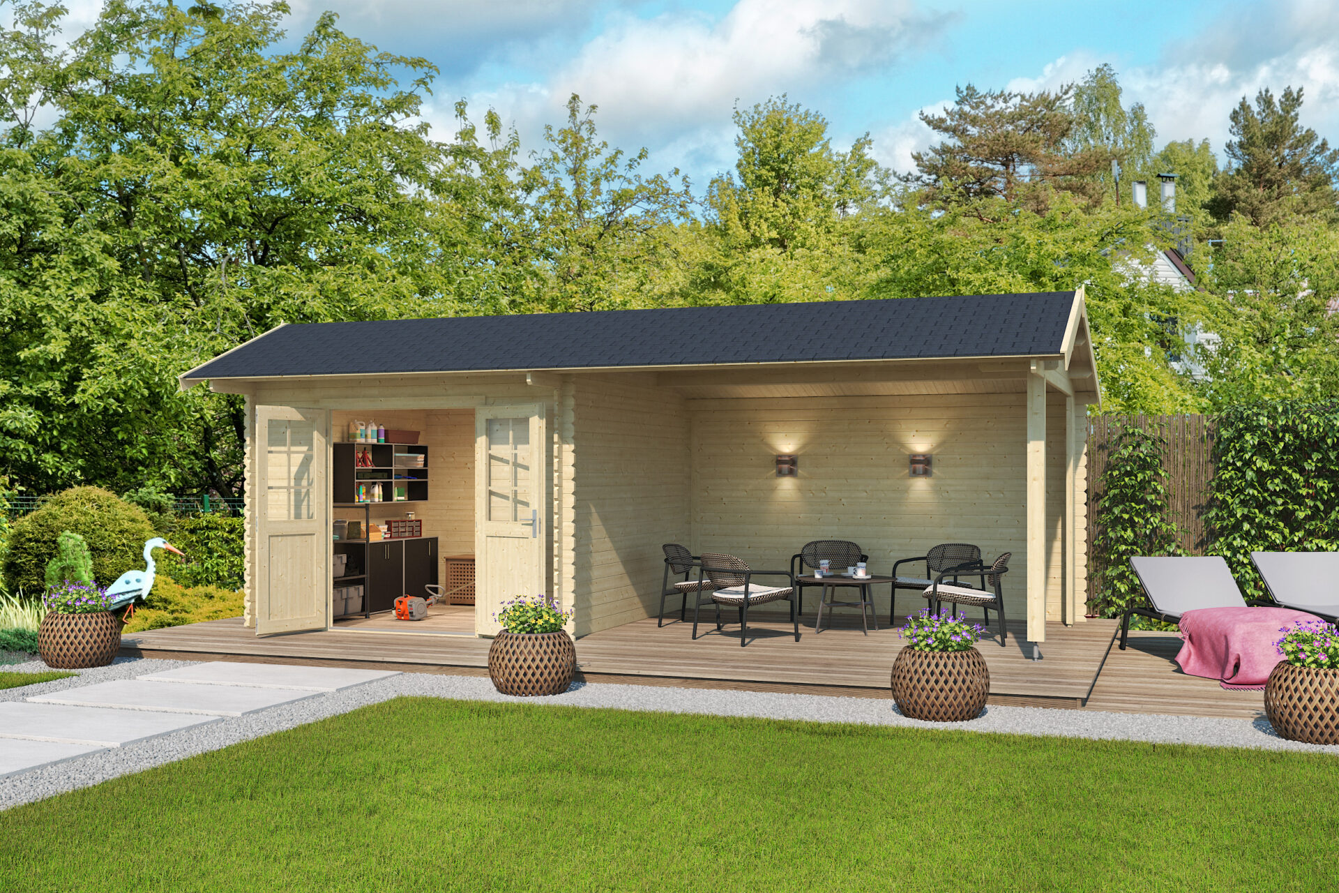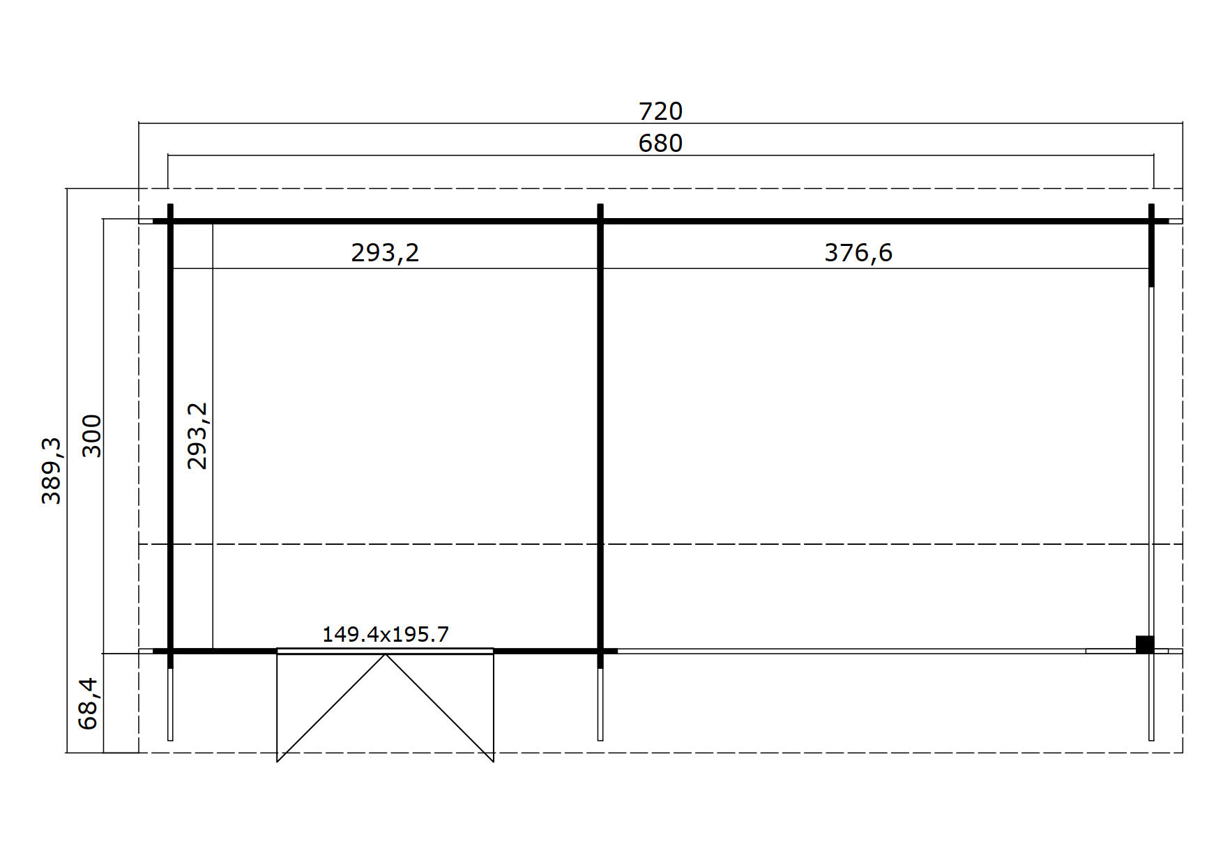 Põrandapind 8.60 m²Ehitisealune pind: 20.40 m²Katuse pindala: 29.52 m²Varikatuse pindala: 11.04 m²Katuse kalle: 22 ; 16Seina paksus 34 mmAlusraam: -Põrandalaua paksus: -Katuselaua paksus: 15,5 mmVundament 680 x 300 cmLaius koos räästa üleulatuvusega: 720 cmSügavus koos räästa üleulatuvusega: 389 cmSeina kõrgus: 245 cmHarja kõrgus: 274 cmKatuse üleulatuvus eest: 68 cmKatuse üleulatuvus külgedelt: 20 cmKatuse üleulatuvus tagant: 21 cmUkse tüüp BronzeUkse mõõdud: 1494 x 1957 mmUkse klaasi paksus: 4Ukse klaasi tüüp: Ühekordne klaasPaigaldatav peegelpildis: JahViimistlus: ViimistlemataVärvitoon: NaturaalneKonstruktiivne materjal: FeesprussNurga tüüp: Tapitud nurkMaterjal: Põhjamaine kuuskLumekoormus: 36 kg/m²