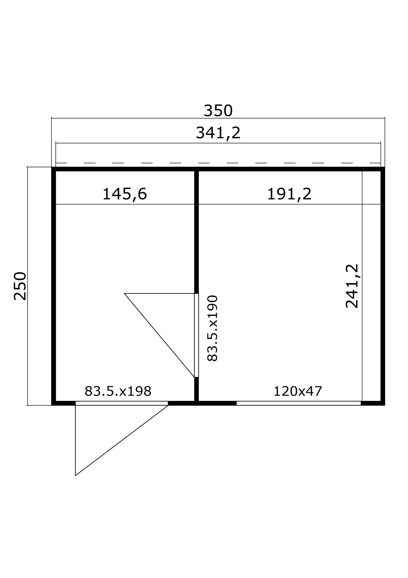 Laius koos räästa üleulatuvusega: 341 cm