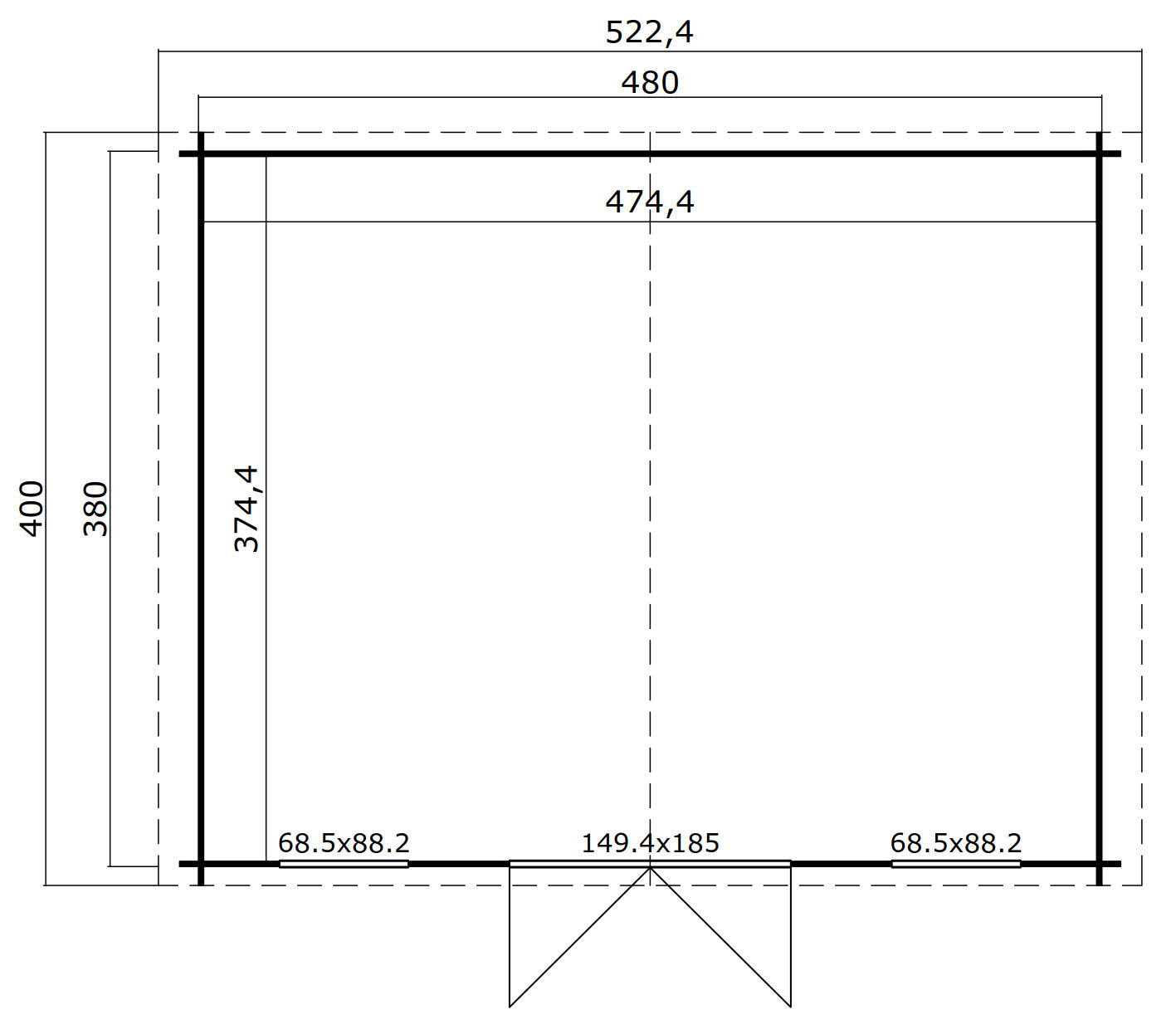 Põrandapind 17.76 m²Ehitisealune pind: 18.24 m²Katuse pindala: 21.60 m²Katuse kalle: 14.7Seina paksus 28 mmAlusraam: -Põrandalaua paksus: -Katuselaua paksus: 15,5 mmVundament 480 x 380 cmLaius koos räästa üleulatuvusega: 522 cmSügavus koos räästa üleulatuvusega: 400 cmSeina kõrgus: 194 cmHarja kõrgus: 257 cmKatuse üleulatuvus eest: 10 cmKatuse üleulatuvus külgedelt: 21 cmKatuse üleulatuvus tagant: 10 cmUkse tüüp BronzeUkse mõõdud: 1494 x 1850 mmUkse klaasi paksus: 4Ukse klaasi tüüp: Ühekordne klaasAkna tüüp BronzeAkna mõõdud: 685 x 882 mmAkna klaasi paksus: 4Akna klaasi tüüp: Ühekordne klaasPaigaldatav peegelpildis: JahViimistlus: ViimistlemataVärvitoon: NaturaalneKonstruktiivne materjal: FeesprussNurga tüüp: Tapitud nurkMaterjal: Põhjamaine kuuskLumekoormus: 88 kg/m²
