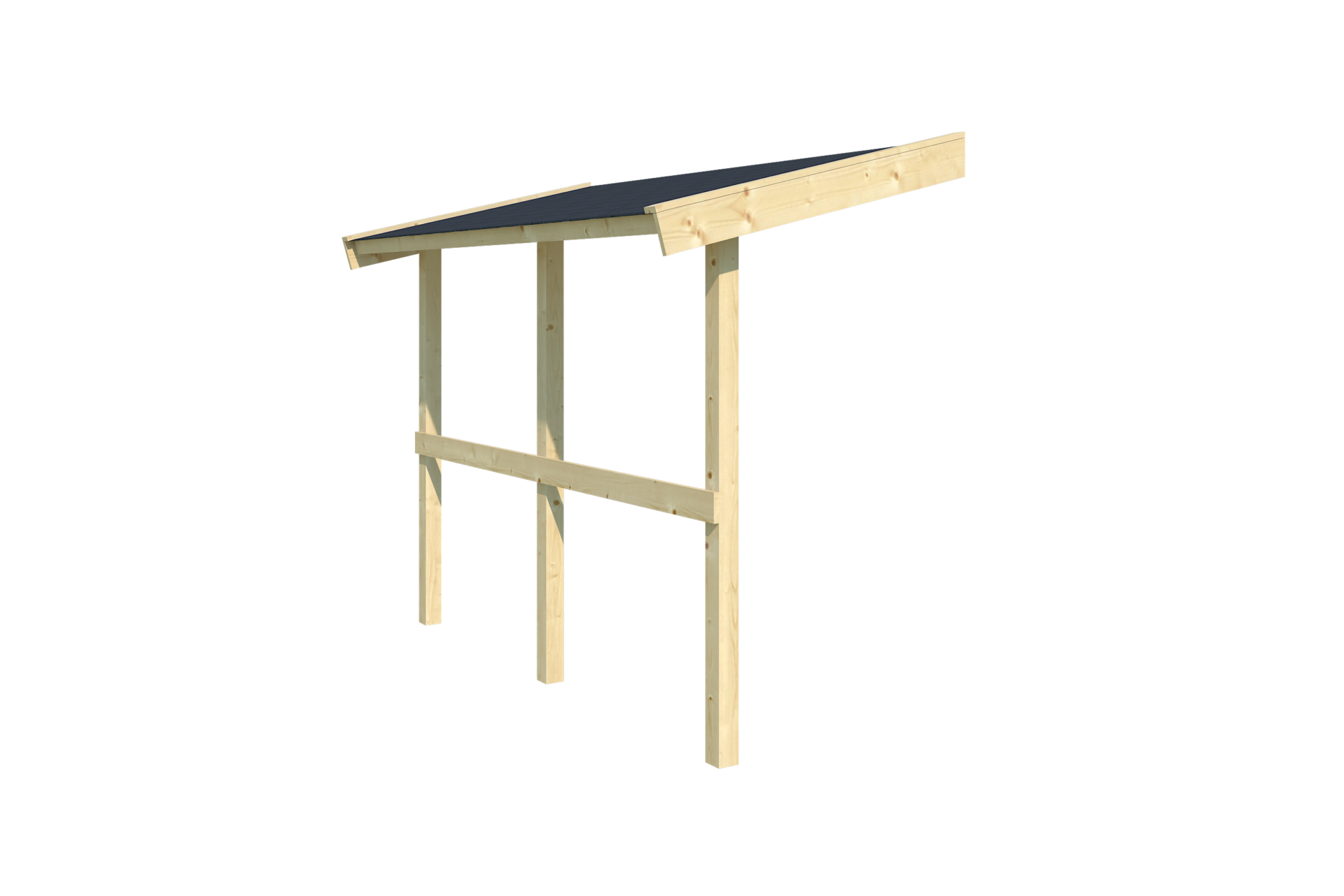 Tarnekomplekt sisaldab varikatuse viimistlemata puitdetaile koos kinnitusvahenditega.
