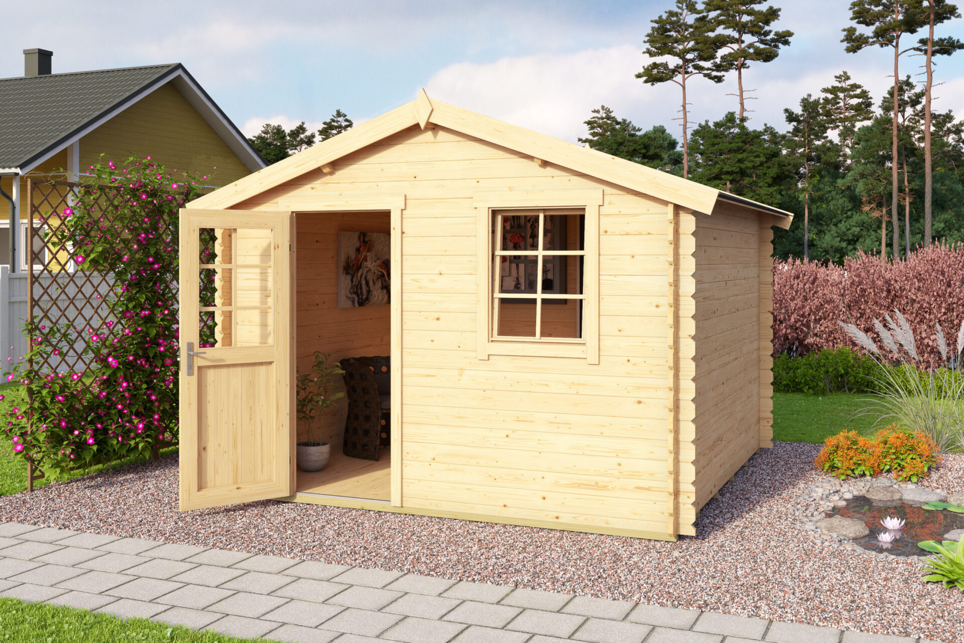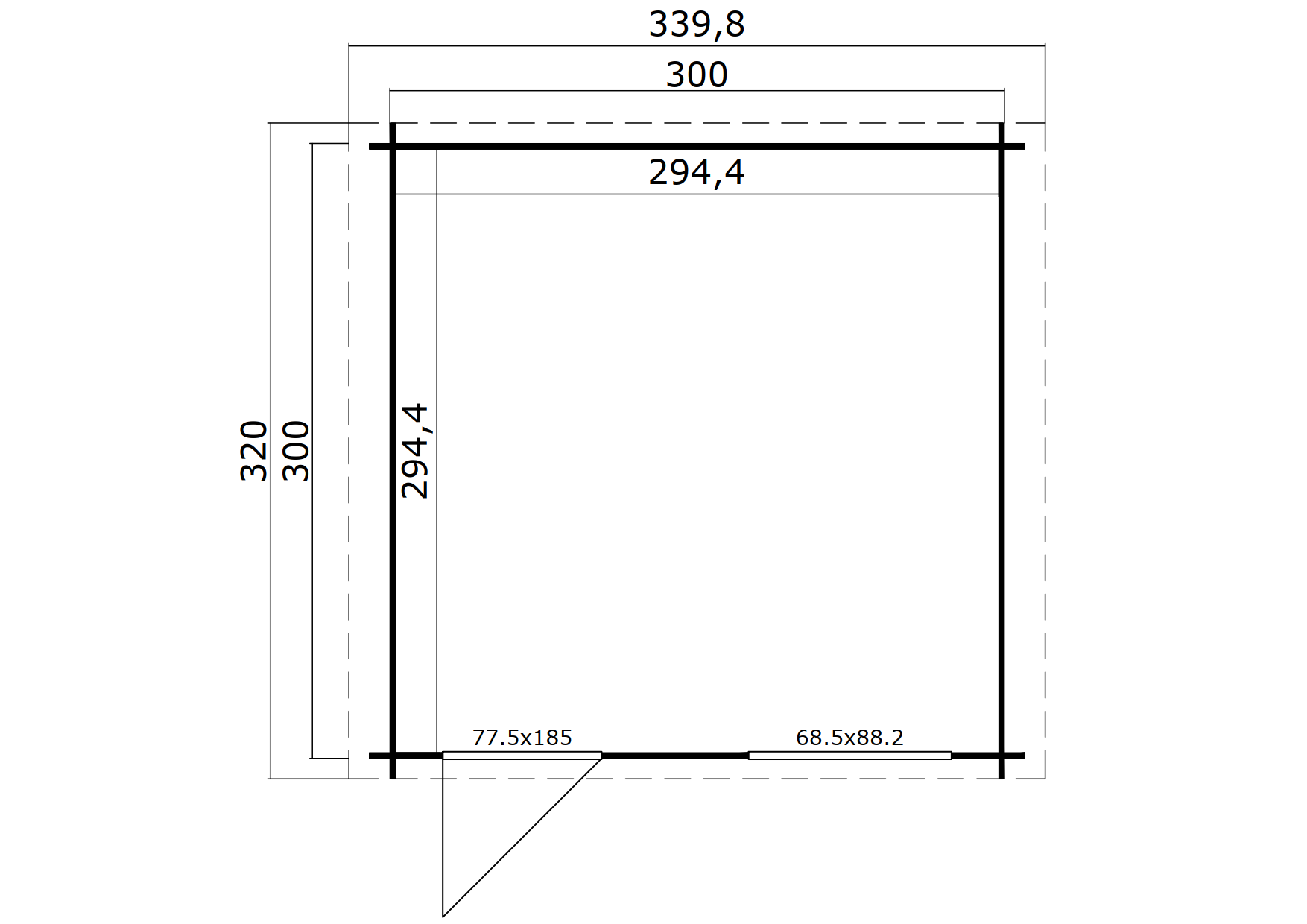 Põrandapind 8.67 m²Ehitisealune pind: 9.00 m²Katuse pindala: 11.81 m²Katuse kalle: 15Seina paksus 28 mmAlusraam: 45 x 45 mmPõrandalaua paksus: 15,5 mmKatuselaua paksus: 15,5 mmVundament 300 x 300 cmLaius koos räästa üleulatuvusega: 340 cmSügavus koos räästa üleulatuvusega: 320 cmSeina kõrgus: 194 cmHarja kõrgus: 245 cmKatuse üleulatuvus eest: 10 cmKatuse üleulatuvus külgedelt: 20 cmKatuse üleulatuvus tagant: 10 cmUkse tüüp BronzeUkse mõõdud: 775 x 1850 mmUkse klaasi paksus: 4Ukse klaasi tüüp: Ühekordne klaasAkna tüüp BronzeAkna mõõdud: 685 x 882 mmAkna klaasi paksus: 4Akna klaasi tüüp: Ühekordne klaasPaigaldatav peegelpildis: JahViimistlus: ViimistlemataVärvitoon: NaturaalneKonstruktiivne materjal: FeesprussNurga tüüp: Tapitud nurkMaterjal: Põhjamaine kuuskLumekoormus: 91 kg/m²