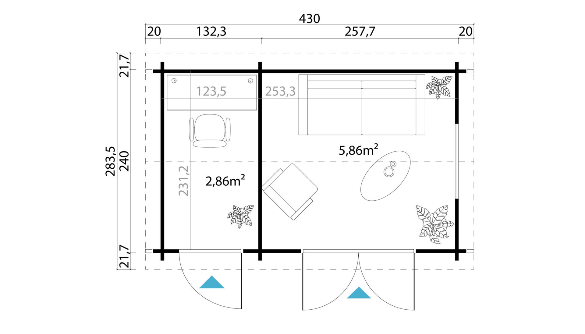 Sügavus koos räästa üleulatuvusega: 288 cm
